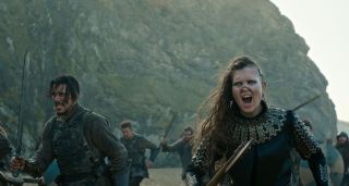 fot. NetflixMerlin zasługuje na osobny akapit, bo jest prawdopodobnie największym nieporozumieniem. Po pierwsze - zmarnowano talent Gustafa Skarsgarda, który nie ma nic do roboty jako Merlin. Rola tej postaci w tej historii jest zbyteczna poza byciem celem misji Nimue. Problem w tym, że decyzje, które podjęto na początku, nie są dla serialu korzystne - Merlin alkoholik, pozbawiony magii, a do tego ojciec Nimue. Ten ostatni twist miał być cliffhangerem jednego z odcinków. Pewnie wielką niespodzianką, a okazuje się kolejnym gatunkowym schematem, który był przewidywalny zbyt szybko. Prawdziwy Merlin pojawia się tylko przez chwilę na sam koniec sezonu, gdy dzierżąc przeklęty miecz, zaczyna siać zniszczenie w szeregach wrogów. Jedna, krótka, efekciarska scena, w której Merlin miał charakter. W pozostałych to postać snująca się po ekranie najpierw w celu zdobycia miecza, by go zniszczyć, a potem, gdy już dowiedział się, że ma córkę, jak za pstryknięciem palca, by ją ochronić. Nudna, pozbawiona osobowości postać, która miała być zmęczonym nieśmiertelnym czarodziejem, a stała się zbyt podobna do Flokiego z najgorszego okresu Wikingów.
