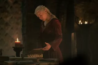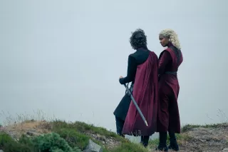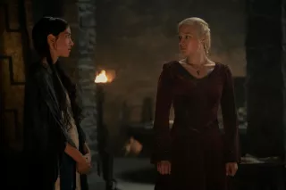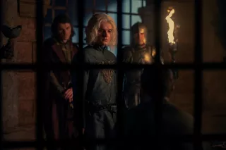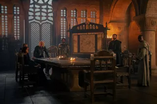 Śmierć młodego następcy dotknęła nie tylko Zielonych. Podobało mi się, że Rhaenys już po jednym spojrzeniu na Daemona zdawała się wiedzieć, co się stało. W końcu znała go od wielu lat – dłużej od Rhaenyry, która także mocno przeżyła wieść o morderstwie (również z uwagi na fakt, że zaszkodzi to jej pozycji i może odepchnąć sojuszników). Trudno stanąć po stronie Daemona w tej kłótni. Rozumiem, że definiuje go przeszłość i relacja z bratem, ale mam wrażenie, że twórcy nie mają ciekawego pomysłu na Księcia Łotrzyka. Muszę natomiast pochwalić sprzeczkę kochanków, bo ta wypadła fantastycznie. Cała zasługa leży po stronie aktorów – Matta Smitha i Emmy D'Arcy. Podobało mi się też, że twórcy wprawili kamerę w ruch. Sekwencja wymiany poglądów, pełna emocji i pretensji, była dynamiczna. Nie mogę się doczekać następnych wydarzeń z Daemonem, który weźmie sprawy w swoje ręce, ale jednocześnie będzie mi brakowało tego duetu na ekranie. Ta scena to jasny punkt odcinka.