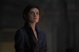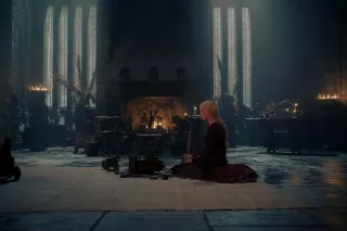 Tymczasem Daemon udał się do Harrenhal i bez trudu zdobył największy zamek w Siedmiu Królestwach. Sceny w tym miejscu były świetne – nawiedzone korytarze starego zamczyska robiły wrażenie! Reżyserka udowodniła, że da się zrobić nocną scenę, w której wszystko dobrze widać. Korytarze pełne nietoperzy były wyjęte z horroru. Rozmowa z tamtejszym lordem wskazała na kompleksy i niespełnione ambicje Księcia Łotrzyka, który każe się tytułować niczym król. Wszystkie sekwencje w zamczysku odsłoniły słabości Daemona – jego paranoję, wyrzuty sumienia oraz tęsknotę za Rhaenyrą. Te ostatnie dwa połączyły się w jedno podczas wizji, w której na moment pojawiła się Milly Alcock w roli młodej Rhaenyry. Bohaterka zszywała Jaehaerysowi Targaryenowi głowę, którą stracił z rozkazu Daemona. Palce w tym maczać mogła Alys Rivers – to było ciekawe wprowadzenie; nie mogę się doczekać tego, co zaprezentuje ta postać.