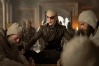Król uzurpator Aegon żyje. Co prawda przypomina bardziej pizzę, którą ktoś zostawił w piekarniku i o niej zapomniał, ale nadal oddycha, co raczej nieszczególnie podoba się jego bratu, Aemondowi. Ten jednak nie ma wielkich powodów do narzekania. Został księciem regentem, który pod nieobecność brata będzie zarządzać Siedmioma Królestwami. Scena, która do tego doprowadziła, była moim zdaniem całkiem ciekawa. Mam mieszane uczucia, co do reakcji Alicent na jej przebieg. Czy naprawdę nie spodziewała się, że ci sami ludzie, którzy stwierdzili, że Rhaenyra nie powinna być królową z powodu tego, że jest kobietą, teraz pozwolą jej przejąć władzę w Siedmiu Królestwach? Widać, że jej pozycja została bezpowrotnie zachwiana, podobnie do światopoglądu. Zrozumiała w końcu, jakimi ludźmi się otoczyła. Wydaje się tym wszystkim przytłoczona, ale trudno jest nie myśleć, że po trosze dostała po prostu za swoje. Nawet ser Criston Cole się od niej odwrócił mimo bycia jej kochankiem. To jednak było nieuniknione zważywszy na to, że ich relacja opierała się raczej na desperacji. Z kolei sam wybór Aemonda jest rozsądny pod wieloma względami, a argumenty stojące za nim zostały odpowiednio przytoczone. Trwa wojna. To wojownik powinien poprowadzić Zielonych do walki.