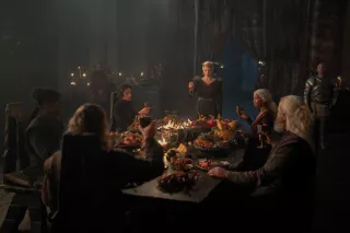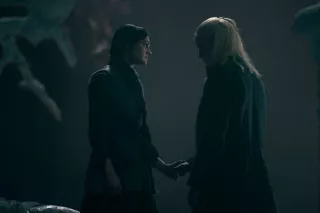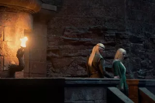 Absurdów było więcej – na przykład swobodne wycieczki z /do Królewskiej Przystani. Alicent uciekła z Twierdzy z jednym strażnikiem i popłynęła na Smoczą Skałę do Rhaenyry. Obie powtarzają rozmowę sprzed kilku odcinków, która do niczego nie prowadzi i niczego nie zmienia. Na pochwałę zasługuje jedynie to, jak Rhaenyra bezlitośnie obnażyła hipokryzję Alicent i wypunktowała jej słabości.