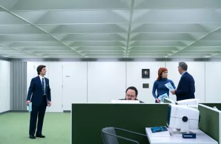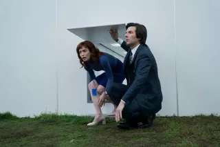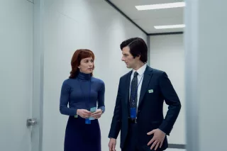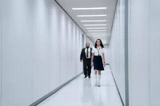 fot. Apple TV+Więcej informacji o pani Casey uzyskał Irving, który poszedł do działu optyki i projektowania. Spotkał tam Felicię, której pokazał swoje szkice. Ten wątek mógł niektórych widzów lekko znudzić, ale był pełen ciepła, bo bohaterowie wspierali się w tęsknocie za Burtem. Irv odkrył też, że czarny korytarz to hol eksportowy, gdzie nadaje się przesyłki. Niewiele nam to mówi, ale zawsze jest to kolejny element do tej całej pokręconej układanki fabularnej. Mały krok naprzód, który ukierunkuje działania pracowników rafinacji.