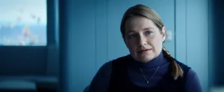 Mimo wszystko najdziwniejszą rzeczą w tym odcinku była wycieczka Marka i Helly do działu z kozami. Coraz bardziej wydaje mi się, że mamy do czynienia z Heleną udającą swoją alterkę. W niezręcznej scenie na korytarzu Helly raczej zachowałaby się w spontaniczny sposób. Od tej sytuacji odwrócił uwagę wątek z kozami. Bohaterowie odkryli... pastwisko. Zaskoczenie i rozbawienie szybko zastąpiło napięcie i strach, bo poprzebierani opiekunowie zwierząt nie byli przyjaźnie nastawieni do przybyszów. Ostatecznie Mark i Helly udobruchali gospodarzy, a także dowiedzieli się paru pozytywnych, choć mało istotnych informacji o pani Casey. Rozbawiła mnie prośba o to, by pracownicy rafinacji pokazali brzuchy. Gwendoline Christie sprawiła, że ten wątek zadziałał i nie poległ pod ciężarem dziwaczności. Aktorka ugruntowała go swoją śmiertelną powagą, szaleństwem w oku oraz mieszanką zniecierpliwienia ze zniesmaczeniem. Była fantastyczna!