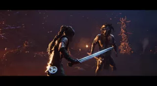 Również walka nie jest specjalnie skomplikowana, choć cieszy fakt, że tym razem zadbano o więcej rodzajów wrogów. Czasami potrafią oni zaskoczyć swoimi ruchami, na przykład zionąc w nas ogniem czy wykonując trudniejsze do przewidzenia ciosy. Sama Senua nadal potrafi wykonywać dość proste kombinacje, a także jest w stanie unikać wrogich ataków, blokować i parować je. Powraca skupienie, dzięki któremu zwolnimy upływ czasu, co pozwoli na szybkie i bezpieczne rozprawienie się z przeciwnikami. Choć próżno szukać pojedynków tak ekscytujących i widowiskowych, jak te z serii God of War, to ma to swój urok. Główna bohaterka nie jest potężnym bogiem wojny, a "zwykłą" wojowniczką, która walczy nie tylko z wrogami, ale też i o swoje życie. Stawia efektywność ponad efektowność, a w wyprowadzanych przez nią ciosach czuć ich ciężar i związaną z nim desperację. Niekiedy ma się wrażenie, że wyprowadzając atak Senua wkłada z niego całą swoją siłę. Taka brutalność i surowość sprawia, że pojedynki są całkiem satysfakcjonujące mimo pozornej prostoty i pewnych mechanicznych braków.