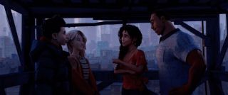 Kontynuując tę paradę zachwytów, należy przejść do fabuły Spider-Man: Poprzez multiwersum, która naprawdę zaskakuje. Nie chodzi jednak o to, o czym opowiada ten film (tu zresztą jakiekolwiek skróty fabuły byłby zbyt ujawniające, należy je więc pomijać), ale jak to robi. Udaje się bowiem w tym obrazie coś niezwykle trudnego – balans pomiędzy tym, co w historii niesamowicie efektowne i zabawne, a scenami bardziej refleksyjnymi, stonowanymi, melancholijnymi wręcz. Jest taka scena między Milesem a jego matką, Rio, która trwa i trwa – jest piękna, poruszająca, intymna. Nie chce się, by się kończyła; trudno jednak nie zwrócić uwagi, że przecież Hollywood nie lubi takich momentów, że w blockbusterach rozmowy zwykle są krótkie, płytkie i kończą się, gdy wokół bohaterów coś wybuchnie.