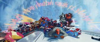 Pozostaje przy tym ten film radosną jazdą bez trzymanki do krainy geekowskiego odpału, gdzie nie ma żadnych zasad, poza tym, byśmy uśmiechali się, piszczeli na widok postaci uderzających prosto w naszą nostalgię czy też otwierali szeroko oczy i usta, nie mogąc uwierzyć, co też w tym momencie wyczynia się na ekranie. Są w tej produkcji sekwencje, które za jakiś czas wszyscy będziemy oglądać w domach, co chwilę wciskając stop i przyglądając się kolejnym kadrom, by wyłowić jak najwięcej z tego, co twórcy upchali na ekranie ku naszej uciesze. Jeżeli ktoś myślał, że Uniwersum było jazdą bez trzymanki, to na Poprzez multiwersum z wrażenia wystrzelą mu wszystkie korki.