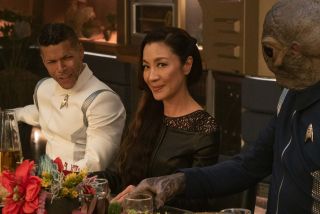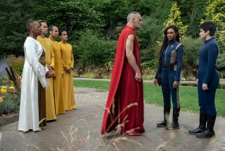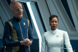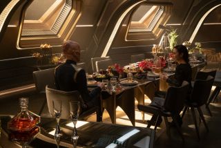 Star Trek: Discovery dobrze się sprawdza na pokładzie statku, bo twórcy w końcu poświęcili chwilę, by pokazać, że sprawy nie mają się najlepiej. Ukazanie załogi jako ludzi (i czymkolwiek tam są...), którzy podjęli dramatyczną decyzję dla dobra ogółu i muszą zmierzyć się z osobistymi konsekwencjami, jest udane. Szczególnie dobrze to wygląda podczas wspólnej kolacji, która miała rozładować napięcie, a jedynie podbudowała konflikty. Choć cała sytuacja z zachowaniem Detmer wydaje się dziwna, niezrozumiała i kompletnie bez sensu, bo czym to wyjaśnią, że zaczyna gadać takie rzeczy? Problemy emocjonalne załogi mają jednak swoje ograniczenia w tłumaczeniu pewnych kwestii. Nawet ten koniec z filmem Bustera Keatona, który choć jest przesadzony (śmiech non stop jak w jakimś sitcomie), to przynajmniej do czegoś doprowadził i pozwolił na pierwszy krok w przemianie tej załogi. Wątek ma znaczenie.