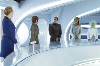 7. odcinek, czyli ostatni przed przerwą do lutego 2022 roku, powinien dać nam wiele emocji. Tych w odcinku nie uświadczymy, a cała opowieść pokazuje w jakimś stopniu problemy twórców tego serialu. Teoretycznie na papierze historia Star Trek: Discovery jest świetnie wpisana w konwencję Star Treka; mamy bowiem rozprawkę filozoficzną na temat idei Gwiezdnej Floty zamiast akcji, przygody czy trafnego humoru. Kłopot twórców polega na tym, że to nie działa na ekranie tak jak w starych serialach uniwersum. Gdy potrzeba mądrych i celnych rozwiązań, twórcy rzucają banały i górnolotne frazesy. Scena wygłaszania przemów do zebranych przez Booka i Burnham boli, bo nie są to słowa niosące głębsze przesłanie. To pusta seria banałów i festiwal oczywistości, który gryzie się z powagą sytuacji, a także wpływem na zebranych. Nie dziwi fakt, że to Michael Burnham rozwiązuje kryzys w kluczowej sytuacji. Na tym etapie serialu to już nawet nie jest śmieszne. Twórcy mogliby dać zabłysnąć innym bohaterom, a tak oni nie mają w tym serialu żadnego znaczenia, bo każdy widz wie, że jak będzie kryzys, to Burnham uratuje dzień.