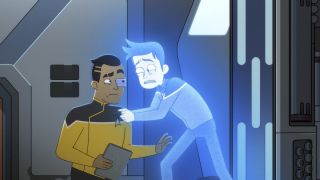 Czasem można odnieść wrażenie, że Mariner jest podobna do Burnham ze Star Trek: Discovery, czyli jest kimś wręcz komicznie idealnym we wszystkim, co robi. Ten epizod pokazuje jednak też drugie dno związane z tym, dlaczego tak utalentowana córka kapitan nadal jest na tak niskiej pozycji w Gwiezdnej Flocie. Co prawda, wyjaśnienie, że musi odnaleźć siebie jakoś średnio przekonuje, ale przynajmniej wątek jej współpracy z kapitan zastępczą i jej dawną przyjaciółką z akademii pokazuje, że świadomie zachowuje się nieprofesjonalnie i amatorsko. Na razie jest to motyw wątpliwej jakości, ale przynajmniej jej problemy pozwalają odrzeć ją z bycia idealną, a umyślne popełnianie błędów pomaga odciąć się od porównań z Burnham. Być może to jest taki pstryczek w kierunku tej postaci, która jest przesadnie alfą i omegą we wszystkim, czego się dotknie.