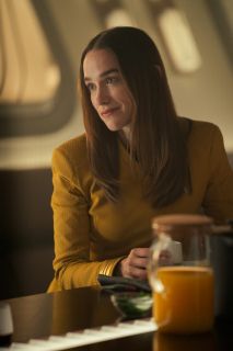 CBSStoimy więc u progu wielkiej wojny, a oko kamery spogląda na Pike'a, tak jakby z dokumentalnym zacięciem chciano pokazać nam kulisy pracy Kapitana statku Enterprise. To nie wszystko, bo twórcy postanowili postawić go obok... samego siebie z przyszłości. Zawsze z dystansem podchodzę do podobnych zabiegów, ale w tym przypadku zadziałało to znakomicie. Pike z przyszłości nie jest tanim wytrychem fabularnym, który ma tylko powstrzymać młodszego siebie przed podjęciem złych decyzji. Narracja w finale jest zresztą bardzo płynna i umożliwia nam zabawę w "co by było, gdyby...?". Nie trzeba jednak oglądać kultowego odcinka Star Treka, żeby dobrze bawić się na finale Strange New Worlds. Mamy tutaj uwspółcześnione podejście i chociaż całość mocno odwołuje się do swojej tradycji, to jednak przetwarzanie znanych tropów od początku sezonu dobrze wychodzi scenarzystom.