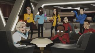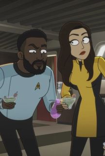 Pojawienie się kreskówkowych postaci w świecie live-action wypada przyzwoicie, ale też nikt nie wymaga od widza znajomości animowanego serialu. Pierwsza kreskówkowa sekwencja właściwie wystarczy, aby połapać się w tej historii. Jest to świat Star Treka, tutaj pojawienie się podróżników w czasie jest normalnym dniem w biurze, więc też widzowie zapewne są zaprawieni w tego typu sytuacjach. Inna sprawa, że naprawdę zabawnie wypada sposób, w jaki Jack Quaid i Tawny Newsome wypadają w aktorskiej wersji. Ich ekspresja przypomina to, co widzowie oglądają w serialu animowanym i te oczywiste sugestie są zwyczajnie zabawne.