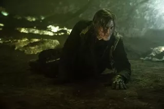 fot. AMCTunel okazał się upiornym miejscem, a bioluminescencyjne zombie robiły wrażenie. To był naprawdę świetny pomysł, aby wprowadzić taki rodzaj szwendaczy. Natomiast gorszym były halucynacje bohaterów. Nie jest to nowy motyw w uniwersum The Walking Dead, bo oglądaliśmy go już kilka razy. Rzadko osiągano zamierzony efekt. W omawianym odcinku tylko zwidy Carol potrafiły poruszyć, ponieważ miała okazję w pewnym sensie pożegnać się z Sophią. To zadziałało, bo dobrze znamy jej dramatyczną historię. Niestety na siłę próbowano wzbudzić emocje halucynacjami Daryla z Isabelle oraz dziadkiem, który zginął na wojnie. Było to mało wiarygodne. Szkoda trochę Codrona, który pod wpływem zwidów brata zaatakował głównego bohatera i zniknął w ciemnościach bez śladu. I po to twórcy forsowali jego przemianę?