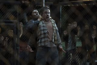 fot. AMCMniej dynamicznie prezentował się wątek Maggie i Negana, którzy opracowywali plan odnalezienia Hershela z pomocą Tommaso i jego grupy. Niespodziewanie kobieta opowiedziała mu o kłótni z synem tuż przed jego uprowadzeniem. Przy okazji otrzymaliśmy też nawiązania do historii z The Walking Dead, co pozwoliło lepiej wczuć się w smutek bohaterki (bardzo dobra Lauren Cohan). Twórcy postanowili wykorzystać sytuację i wyjaśnić też, co stało się z Annie i dzieckiem. Była to równie przykra opowieść, co Chorwata, ale z nieco lepszym zakończeniem. Natomiast ta relacja między nimi zaczyna ewoluować. Jakby nastąpiła pewna akceptacja i zrozumienie między nimi, co jest na pewno krokiem naprzód. Do tego nie jest to pokazane w naiwny sposób, ale dość zniuansowany. Dzięki tym wyznaniom klimatyczna sekwencja, w której pokazano wspólną kolację grupy z głównymi postaciami i Chorwata zagrzewającego swoich zwolenników, nabrała melancholijnej głębi.