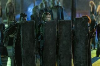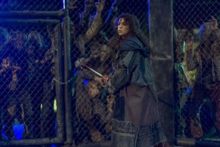 Następnie przeszliśmy do bardziej dynamicznych wydarzeń, gdy grupa Maggie została złapana w pułapkę przygotowaną przez Chorwata. Odliczanie zegara, przerażona nastolatka, wybuchy, muzyka i hordy zombie intensyfikowały emocje. Potem dramatyczna walka bohaterów na arenie też robiła wrażenie, ponieważ zaatakowało ich wiele szwendaczy. Twórcy nawet zadbali o to, aby było jasne, że wszystkie drogi ucieczki są zablokowane, a widowiskowe ujęcia w klatce i poza nią mają sens. Ostatecznie po wielu trudach zdziesiątkowana grupa przebiła się do korytarzy Madison Square Garden, aby zadecydować o kolejnym niebezpiecznym kroku – zejściu do kanałów. Gdyby to był inny serial z uniwersum The Walking Dead, to raczej podchodzilibyśmy do tego, jak do kolejnego etapu tej misji i kolejnej przeszkody do pokonania. Natomiast w The Walking Dead: Dead City bardzo dba się o to, aby podkreślać to, jak wielkie niebezpieczeństwa czyhają na Manhattanie. Kilkukrotnie powtarzano, że kanały ściekowe są pełne zombie, a do tego dochodzą opary trującego metanu. Również przerażenie malujące się na twarzy Amaii na samą myśl o tym miejscu dużo mówi o tym, że jest się czego bać. Karina Ortiz może niezbyt dobrze zagrała rozpacz na widok atakowanego przez umarłych Tommaso, ale strach wyszedł jej przekonująco. Natomiast jeśli chodzi o wspomnianego bohatera, to można się domyślić, że został ugryziony przez zombie, bo przestał dbać o własne bezpieczeństwo, ratując swoją dziewczynę, Maggie i Ginny. Dopiero w następnym odcinku dowiemy się, czy to spostrzeżenie jest prawidłowe.