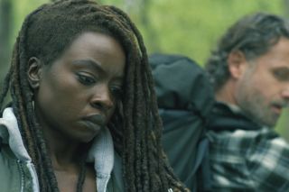 fot. AMCJednak w teraźniejszości była już bezlitosna. Ścigała zaciekle Ricka i Michonne, którzy wcześniej mieli trochę czasu, aby zrobić sobie krótki "miesiąc miodowy" w parku. Nie zabrakło romantycznych scen, ale też akcji, gdy ratowali trójkę obdartusów przed kamiennymi szwendaczami. Dobrze, że w serialu znalazło się miejsce na nowy rodzaj zombie, choć pojawiły się tylko na krótką chwilę. To dziwne trio wprowadziło do produkcji troszkę humoru, choć ostatecznie skończyło tragicznie. W każdym razie Rick i Michonne, pomimo że byli ostrożni, zostali nakryci przez Jadis. Przypomniała mi się scena z 6. sezonu The Walking Dead, gdy ci sami bohaterowie wyskoczyli nadzy z łóżka, gdy zaskoczył ich Jezus.