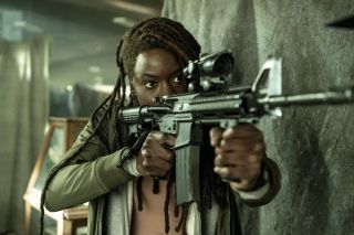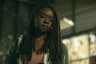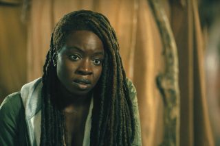 fot. AMCOglądaliśmy też całkiem nieźle nakręconą scenę pościgu samochodowego, która doprowadziła do bezpośredniego starcia między bohaterami w budynku. Nikt nie dał się nabrać na wzajemne kłamstwa, ale warto pochwalić aktorów za przekonującą grę. Jednak można było nieco lepiej pokazać ugryzienie Jadis przez szwendacza. Pollyanna McIntosh świetnie zagrała w scenie, w której wykrwawiająca się postać wyjawiła, że chciała umrzeć jako artystka, a następnie przekazała Rickowi pierścionek od Gabriela. W pewnym sensie ta miłosna historia zatoczyła koło dzięki Jadis. Jej śmierć z ręki Grimesa smuciła, ale nie wzruszyła do łez. Natomiast współczucie budził ojciec Gabriel, który nie doczekał się kolejnego spotkania z Anne.