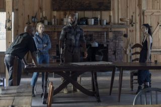 The Walking Dead w końcu zabiera Gammę do bazy bohaterów. Wszystko odbywa się w miarę wiarygodnie, bo po przypadku Dantego nieufność Gabriela i Rosity jest zrozumiała i rzeczowo ukazana. Czemu mieliby jej wierzyć? Prawda jest taka, że nawet oko prawdy Gabriela, które najwyraźniej rozpoznaje kłamstwo bez większego problemu, nie powinno tego zmienić, ale na szczęście w tym miejscu buforem staje się Rosity i nieźle ze sobą to współgra. Zwłaszcza że mamy trochę skrajne podejścia postaci - Rosita czuje się niepewnie, a Gabriel ma w sobie zaskakująco dużo gniewu, który chce wylać na Szeptaczy.