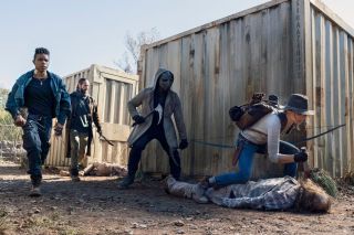 Jak to bywa w The Walking Dead, nie zabrakło szwendaczy, ale jak na ten serial było ich zdecydowanie za mało. Większą rolę w dynamizowaniu odcinka i budowaniu napięcia odegrał napastnik strzelający do grupy Maggie. Kilka sztuczek kamerą, krew oraz niepokojąca muzyka załatwiły sprawę, żeby podnieść emocje. Wysadzenie się w powietrze tego człowieka zaskoczyło. Świadczy też o tym, że Żniwiarze (zakładając, że do nich należał), czyli najprawdopodobniej nowa grupa złoczyńców w The Walking Dead, która podąża śladem Maggie, jest bardzo niebezpieczna, bezwzględna i fanatyczna. Nie jest to oryginalne czy pomysłowe wprowadzenie nowych antagonistów, których wątek i tak pewnie się rozwinie dopiero w jedenastym sezonie wraz z żołnierzami w białych zbrojach i Wspólnotą. Ale ciekawi, czym się wyróżnią ci złoczyńcy oraz wspomniany Pope.