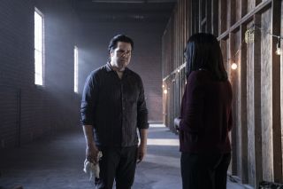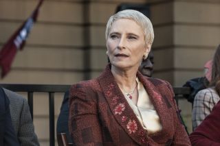 fot. AMCRównież Hornsby, który został pokonany, wygląda na wygranego. Zachował życie i wciąż wśród żołnierzy ma swoich ludzi, z czym nawet nie krył się przed Mercerem ani przesłuchującym go Eugenem. Jedynie zrzedła mu nieco mina przy konfrontacji z panią burmistrz. Ale to wszystko dało okazję Joshowi Hamiltonowi do pokazania się z najlepszej strony. W każdej scenie zagrał znakomicie, dzięki czemu jego postać staje się coraz bardziej wyrazista. W efekcie wyrasta na największego złoczyńcę tej części finałowego sezonu. Widać w jego oczach przebiegłość i pewnego rodzaju arogancję. Hornsby jeszcze nie powiedział ostatniego słowa w tej historii.