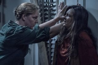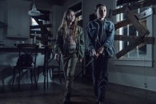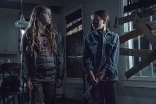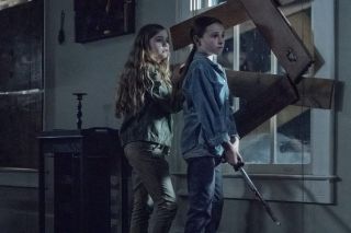 Z kolei wątek dotyczący Alexandrii trochę zawiódł. Twórcy wymyślili sobie, że mieszkańców nawiedzi wielka burza, jakby już ich sytuacja nie była już dramatyczna. I zamiast podążyć śladem Aarona, Connie, Carol i reszty, żeby obserwować, jak sobie radzą na zewnątrz i próbują ugasić pożar w młynie, to musieliśmy oglądać wydarzenia w domu z perspektywy dzieci. Przeżyliśmy chwilę grozy, gdy zombie próbowały dobrać się do Gracie czy dostać się do środka, ale to akurat wyglądało sztucznie i niezbyt przekonująco. Scena, w której Rosita ruszyła sama na zombie, była świetna i klimatyczna, ale króciutka. To trochę za mało, żeby zrekompensować zbędność tego wątku, nawet jeśli Cailey Fleming jako Judith znowu chwytała za serce w rozmowie z Virgilem lub gdy podnosiła na duchu inne dzieci. Tutaj też twórcy zastosowali cliffhanger, w którym dziewczynki utknęły w piwnicy, a szwendacze dostali się do domu. Nie wspominając, że nie znamy też losu postaci, które są na zewnątrz. To na pewno ściągnie widzów z powrotem, gdy serial powróci z nowymi odcinkami. Ale nie można się pozbyć wrażenia, że cały ten wątek stanowił tylko chwilowe wytchnienie dla starcia grupy Maggie ze Żniwiarzami, wypełniające tylko czas epizodu. Robił to solidnie, ale wciśnięto go na siłę, żeby nie posunąć fabuły na przód i nie wnosząc do niej nic istotnego. Choć była ku temu okazja, gdyby Virgil wiedział, gdzie udała się Michonne. Stał się takim wątkiem na przeczekanie, co rozczarowuje.