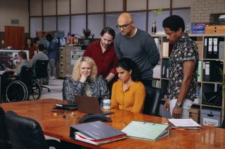Historia tego serialu to jeden wielki chaos, absurd i brak umiejętnego rozpisania jej na poszczególne odcinki. W pewnym momencie nawet czuć, że ona nie tylko nie ma sensu, ale też do niczego nie prowadzi. Tak jakby w którymś momencie ktoś bardzo zadowolony ze swojej pracy stwierdził, że dobrze będzie mieć 2. sezon, więc zacznijmy tę historię przeciągać bez żadnego pomysłu. Fabułę całego sezonu można byłoby streścić w dwóch zdaniach, bo kompletnie nie ruszyła się i stoi w miejscu. Nie ma tutaj pokazu, że ponownie poza bardzo powierzchownie rozpisanym konceptem z potencjałem, jest tutaj jakiś pomysł na opowieść wartą tego czasu. A obok tego nie mamy ciekawych postaci, bo są to puste, nudne i czasem frustrująco irytujące stereotypy, które mają dość banalne role do odegrania. A nawet twórcy idą kilka kroków za daleko, ciągle powielając absurdalnie głupie schematy komediowe z nimi związane, jakby mieli nadzieję, że może żart powtórzony przez kilka odcinków w końcu zacznie śmieszyć.