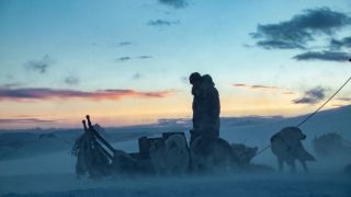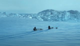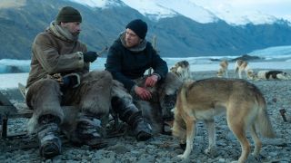 Przez pierwszą część filmu Walka z lodem widzowie towarzyszą w morderczej wyprawie dwóm dzielnym podróżnikom. Mikkelsen, w którego wciela się Nikolaj Coster-Waldau to człowiek surowy, niezłomny i doświadczony. Za wszelką cenę chce osiągnąć cel, który ma dla niego osobisty wymiar. Z kolei Iversen (Joe Cole) to narwany, młody mechanik, zafascynowany kapitanem, pragnący przeżyć przygodę i zapisać się w historii. Szybko też odkrywa, że ta podróż wymaga dużego skupienia i pokory, ponieważ każdy błąd oddala ich od wykonania tego bardzo ważnego zadania i stanowi zagrożenie dla ich życia. W tej części filmu opowieść jest prowadzona bardzo schematycznie. Mężczyźni jadą na saniach, potem dochodzi do kryzysowej sytuacji, Iver próbuje nawiązać rozmowę z markotnym kapitanem, a następnie ruszają w dalszą, malowniczą drogę. Z jednej strony historia opowiadana jest w jednostajnym rytmie, w którym postęp wyprawy odmierza się zmniejszającymi się zapasami prowiantu i podpisami o upływie czasu. Ale z drugiej strony nie powoduje to dłużyzn, dlatego płynnie przechodzimy do kolejnych etapów tej arktycznej misji. Mimo to ogląda się ich zmagania bez większych emocji, jedynie smuci los psów zaprzęgowych.