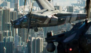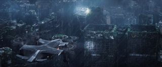 Po opisie dość łatwo można wywnioskować, że Wojownicy przyszłości to film science fiction nastawiony przede wszystkim na szybką akcję. Te oczekiwania spełnia, bo jest napakowany dynamicznymi wydarzeniami, głównie wygenerowanymi komputerowo. Z jednej strony ilość CGI jest przytłaczająca, bo przypomina to grę wideo, z drugiej strony trzeba przyznać, że efekty wizualne są naprawdę przyzwoite. Oczywiście zdarzają się słabsze momenty, jak w przypadku kosmicznych robali, ale oczy cieszą widoki dopracowanych, zniszczonych miast, a także dynamika ruchu postaci w mechanicznych zbrojach. Miejscami za bardzo podkręcano tempo wydarzeń oraz cięć montażowych, bo wystarczy chwila nieuwagi czy mrugnięcie okiem, by przegapić ciekawe i efektowne ujęcie. Natomiast kilka sekwencji akcji, jak ta na drodze szybkiego ruchu, robi spore wrażenie, choć prawdopodobnie i tak nie pozostaną na długo w pamięci.
