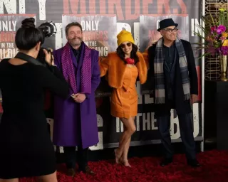 Zbrodnie po sąsiedzku w trzecim sezonie opowiadały o morderstwie i kulisach tworzenia sztuki teatralnej. Czwarta seria od tego odchodzi i stawia na Hollywood. Tym razem obserwujemy, jak powstaje film oparty na podcaście głównych bohaterów. Ten motyw nie stanowi jednak fundamentu historii, a jest tylko jednym z jej elementów. Twórcy nie idą na łatwiznę – nie powtarzają schematu z trzeciej serii, a kombinują, jak wprowadzić hollywoodzki zamęt w śledztwo. I to kapitalnie działa. Nic tu nie jest przypadkowe. Specyficzność Mabel, Charlesa i Olivera miesza się z hollywoodzkim splendorem i daje nam coś świeżego, pomysłowego i czasem szalenie zabawnego.